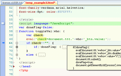專案資源管理器,集成的外部工具等。該編輯器帶有適用於 C++, Java, Perl, PHP, HTML,