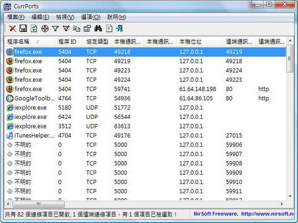 判斷是否有木馬程式正在虎視眈眈地監視你!!!:CurrPorts 1.76 繁體中文綠色版