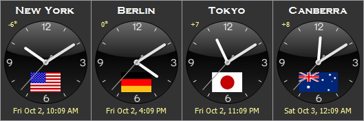 * Country flags for every country in the world, optionally on top of the clock faces